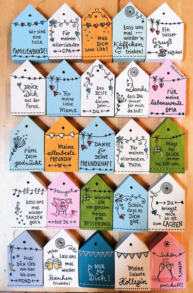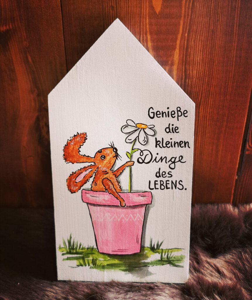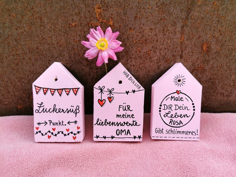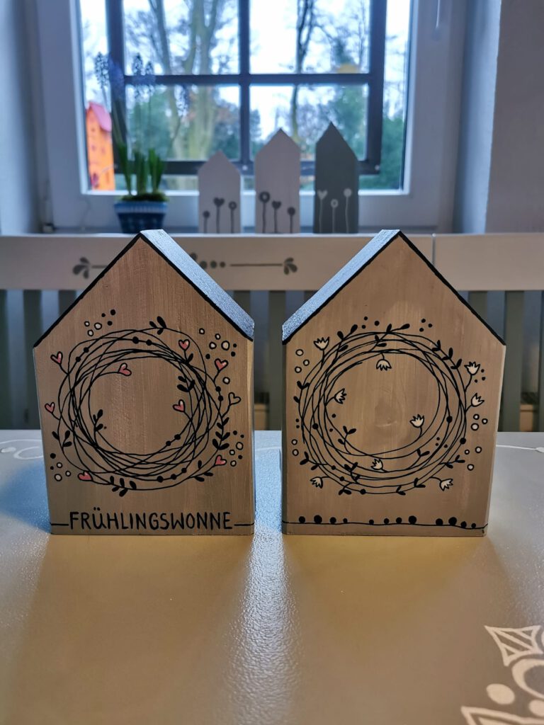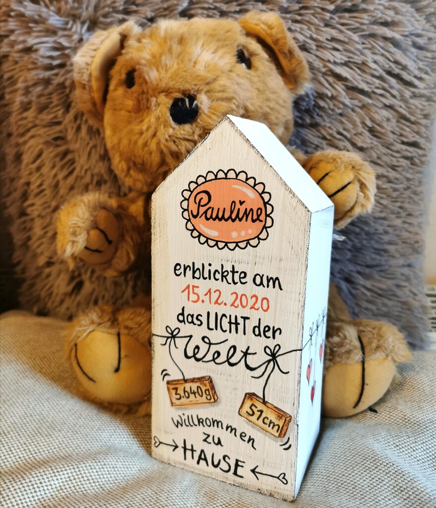 Jedes Haus ist ein „Unikat“. Gerne fertige ich für Sie ein ganz persönliches Haus mit eigenem Schriftzug an. Auch Namen und Daten kann ich gerne mit einarbeiten.
